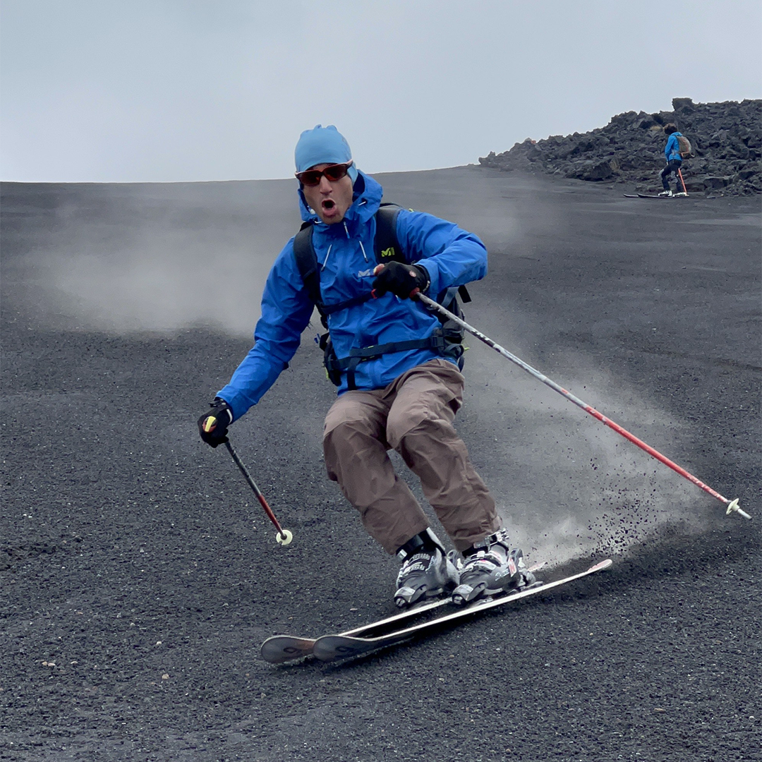 Renzo. “It was mid-February 2023, after a historic storm on Mount Etna. Everything was blocked, everything closed, and we were skiing at sunset on a spectacular firn, with the feeling that the world had stopped.”